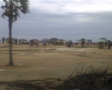 New construction (even beachfront) stands in the distance beyond the sandy golf course.